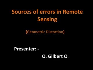 2. Sources of errors include the perspective of sensor optics, motion and orientation of the scanning system, stability of the platform, platform altitude and attitude, terrain relief, and Earth's curvature and rotation.