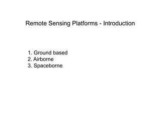 • Satellitesprovide the spaceborne platform for sensors and are indeed