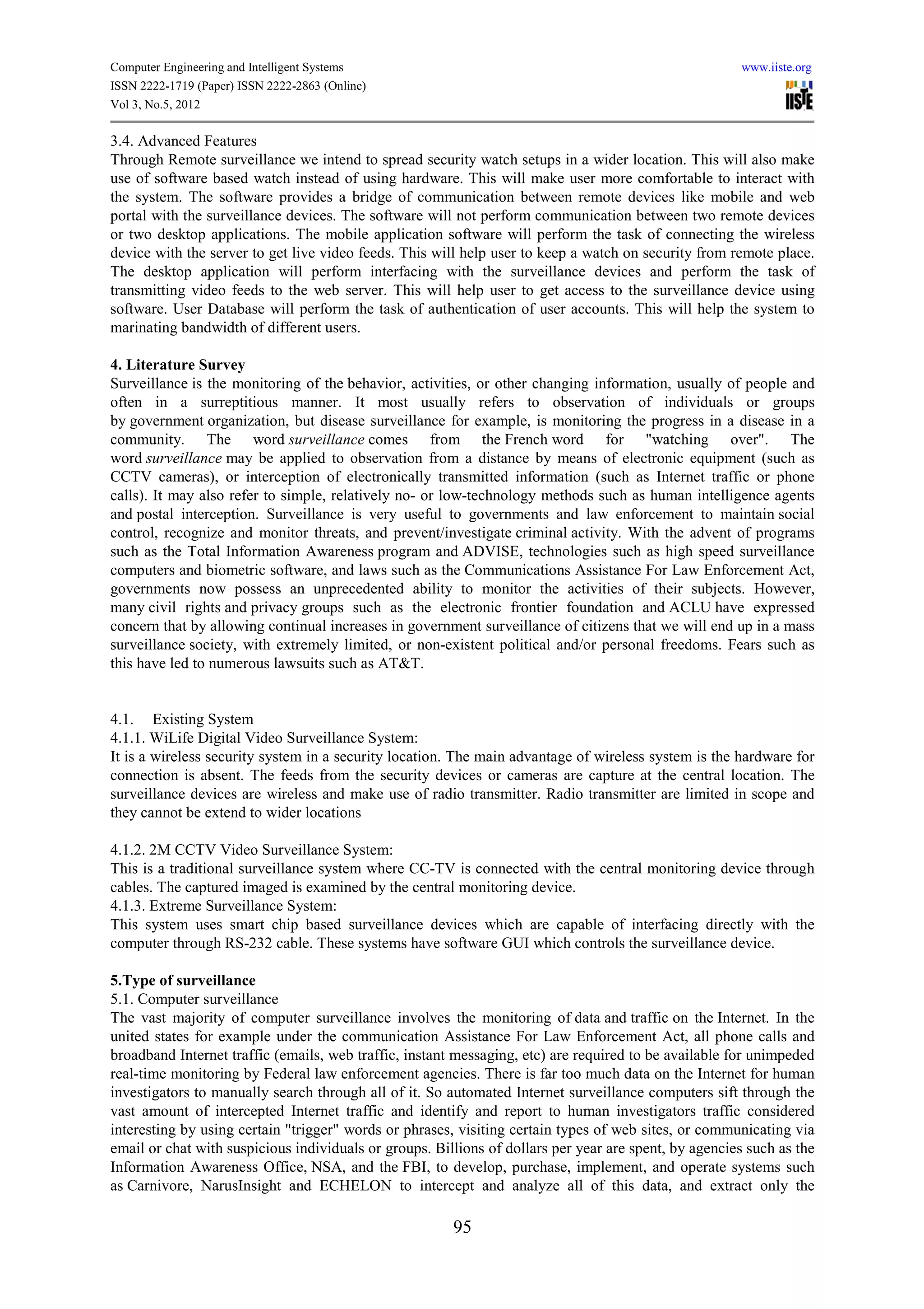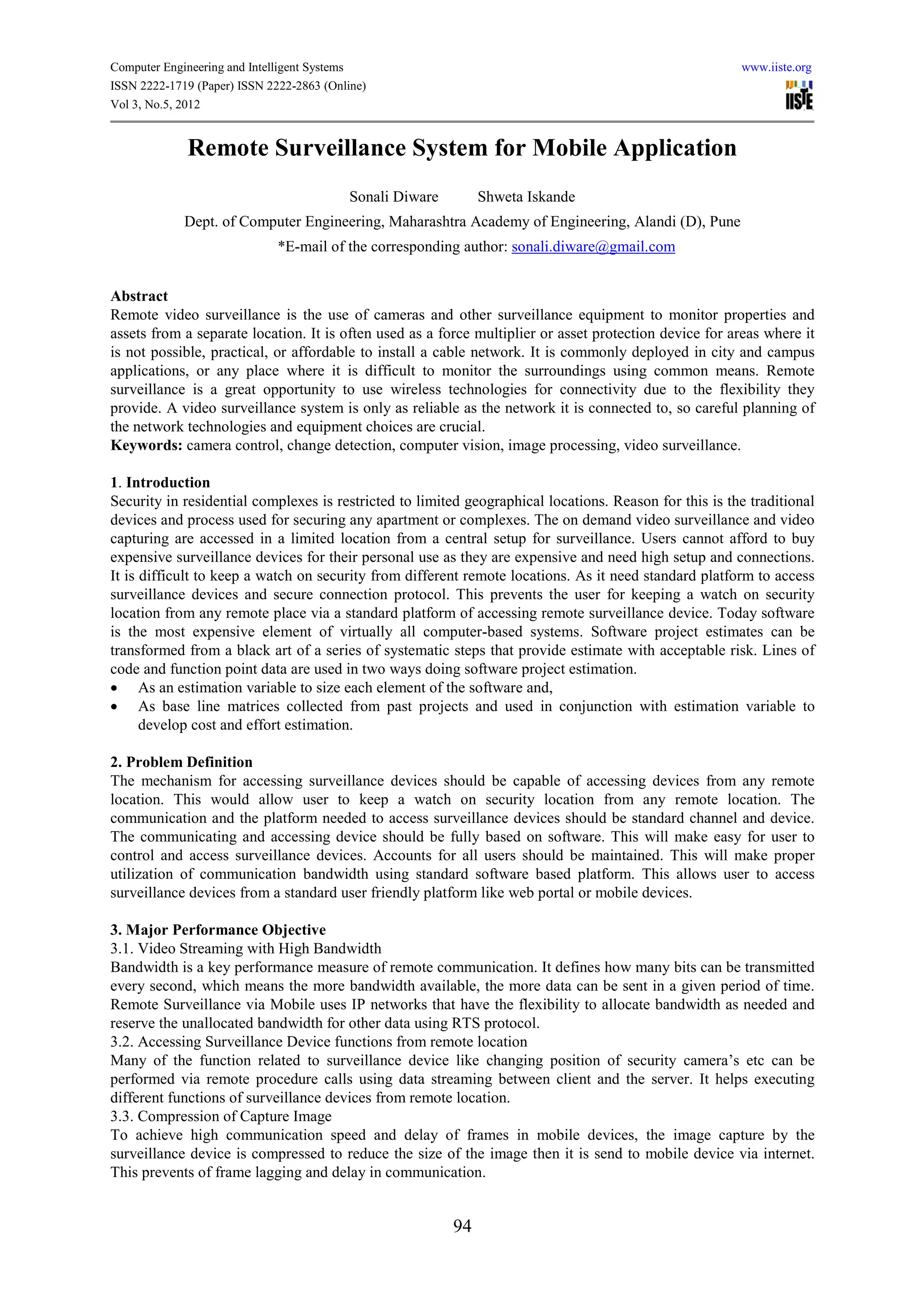 This document discusses remote video surveillance systems for mobile applications. It begins with an abstract describing remote video surveillance and its common uses. It then discusses the need for a software-based system to allow users to access surveillance devices from any remote location via a standard platform like a web portal or mobile device. The document outlines several key performance objectives for such a system, including high bandwidth video streaming, accessing surveillance device functions remotely, compressing captured images to reduce delays, and providing advanced user-friendly features. It reviews existing surveillance systems and their limitations. Finally, it covers various types of surveillance technologies in use, such as computer, telephone, camera and biometric surveillance.