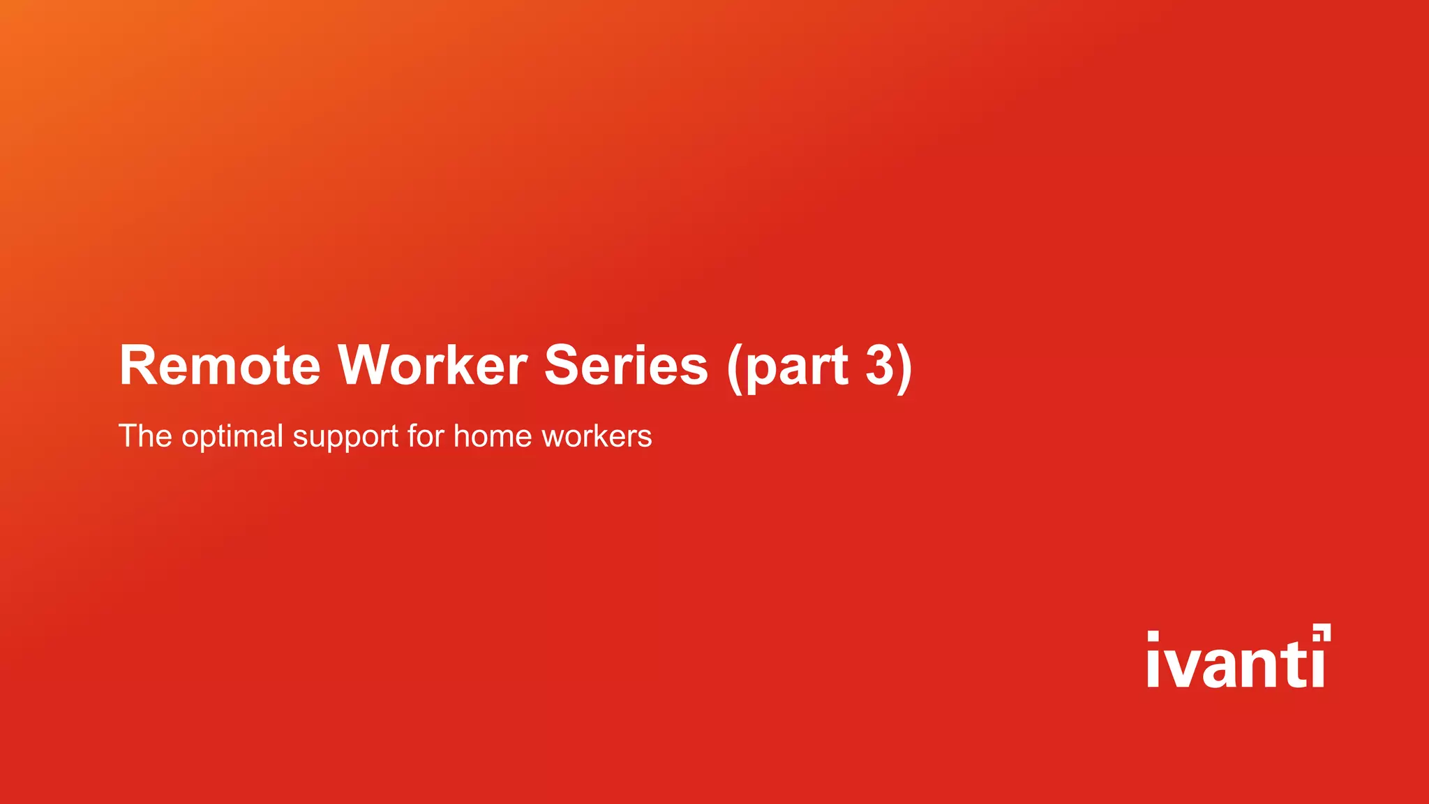 The document discusses optimal support solutions for remote workers, emphasizing the increased need for productivity and security post-COVID-19. It highlights Ivanti's comprehensive management capabilities for devices, including features like co-management, real-time insights, and automated actions. Additionally, there's a mention of a free offer for additional support until October 31, 2020, to assist organizations in managing their remote workforce.