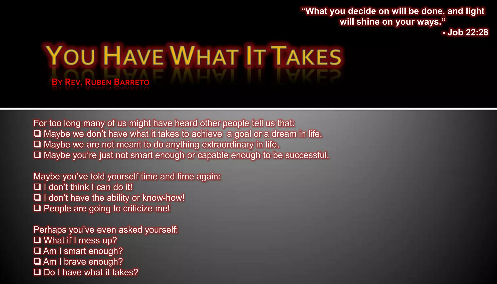 Rev. Ruben Barreto's sermon emphasizes that everyone has the capability to achieve their goals and dreams through faith in God. It encourages listeners to overcome self-doubt and fear, reminding them that God's strength makes them extraordinary. The message concludes with the assurance that whatever we decide to pursue will be successful with God's guidance, as highlighted by various biblical references.
