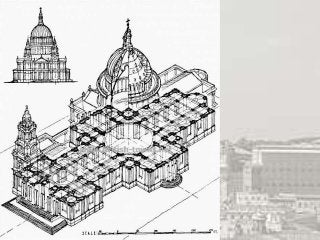 Renaissance architecture developed in 15th century Europe as a revival of ancient Greek and Roman styles. It emphasized symmetry, proportion, geometry and regularity. Buildings had symmetrical facades organized by a system of columns, arches and entablatures. Plans were usually square and symmetrical, based on modular proportions. Common architectural elements included semi-circular arches, domes, columns in classical orders like Tuscan and Doric, and decorative pilasters. The Renaissance style originated in Florence under architects like Brunelleschi and spread across Europe.