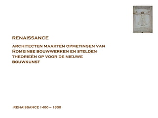 RENAISSANCE 1400– 1650 De Sixtijnse Kapel , Rome werd gebouwd door Giovanni di Dolce tussen 1475 en 1483, in opdracht van paus Sixtus IV, naar wie de kapel ook genoemd werd.