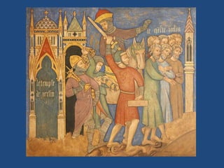 The document provides an overview of Renaissance art, which originated in 15th century Italy in Florence and saw a rebirth of classical Greco-Roman artistic styles and techniques. Key characteristics included a focus on classicism, realism, perspective, and the human figure. Major artists from this period included Brunelleschi, Donatello, Michelangelo, Leonardo Da Vinci, and Raphael. The Renaissance then spread to other parts of Europe, including the development of oil painting techniques in Flanders by artists such as the Van Eyck brothers and Hieronymus Bosch.