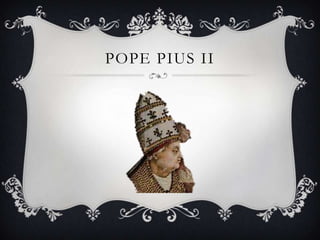 Pope Pius II formally divided Europe, Asia, and Africa into continents in the 15th century. Joan of Arc heard voices and helped France defeat England in the early 15th century. Leonardo Da Vinci invented the parachute in the late 15th century. Christopher Columbus discovered the Americas in 1492 while attempting to find a route to Asia. Galileo promoted heliocentrism in the late 16th century against the Catholic Church.