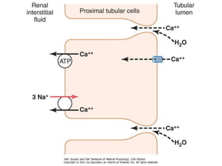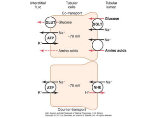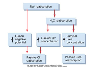 - The loop of Henle and distal convoluted tubule further regulate reabsorption and secretion of ions and water, facilitated by hormones like aldosterone and antidiuretic hormone.