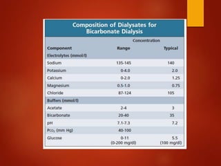 3. Components of home hemodialysis including the dialyzer, composition of dialysate, and blood delivery system.
