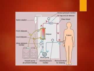 1. Types of renal replacement therapy such as hemodialysis, peritoneal dialysis, and renal transplantation.
