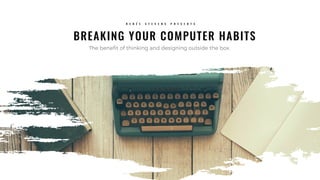 The document discusses the importance of hands-on creativity and breaking traditional computer-based design habits. It emphasizes the maker movement as a response to the desire for unique, tangible creations, encouraging a shift to exploring different forms and experiences in design. Ultimately, it advocates for a future where hands-on work becomes integral to storytelling and design, moving beyond the limitations of rectangular digital interfaces.