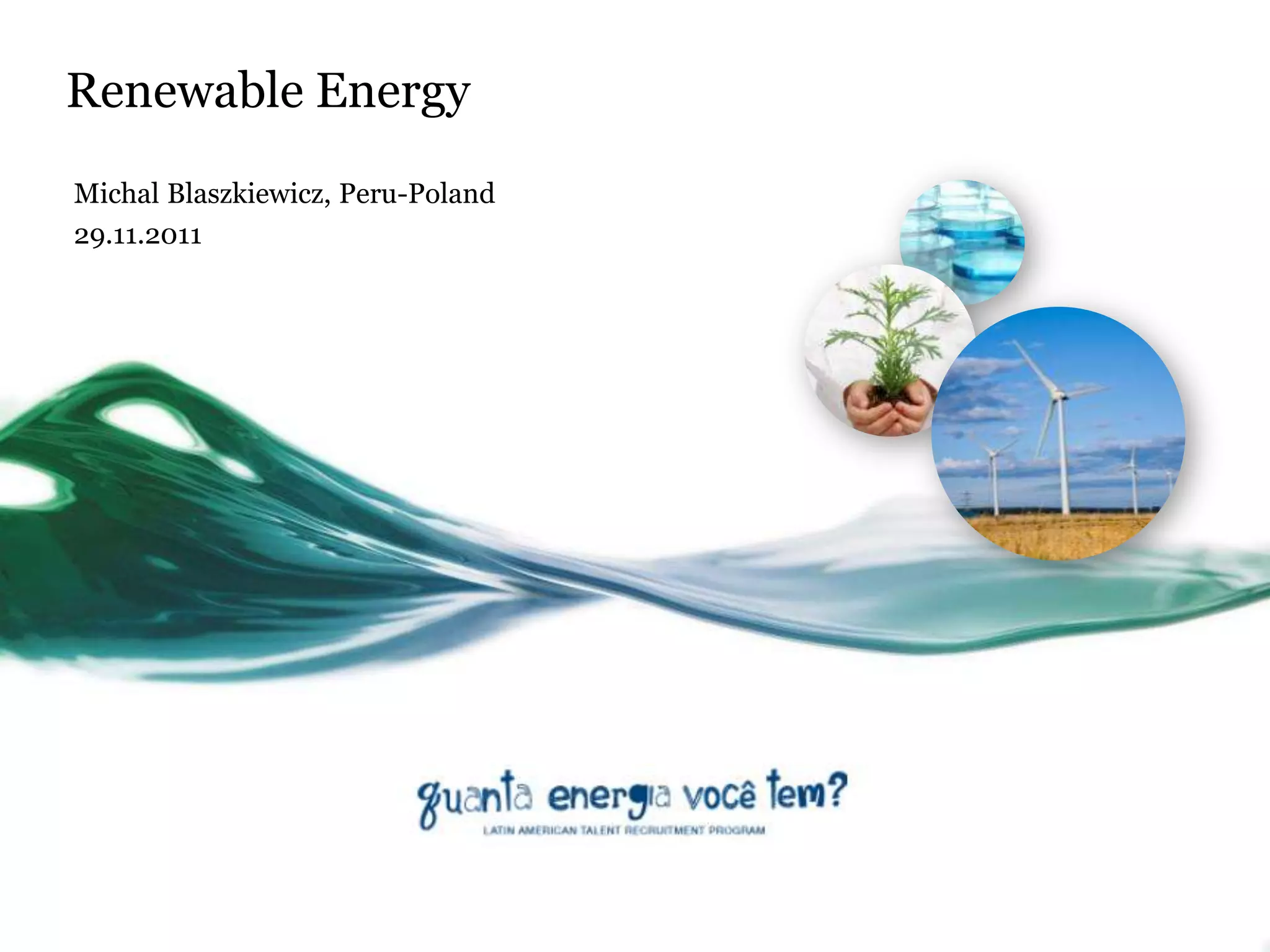 The document outlines a project by Michal Blaszkiewicz focusing on harnessing renewable energy from waste, particularly rubber waste from car tires, through a gasification process. It emphasizes the potential for producing clean energy, improving environmental outcomes, and developing profitable technologies by recycling waste materials. The proposed 'waste work on waste' model aims to achieve energy independence and efficiency in the industry while offering opportunities for personal growth and cultural exchange.