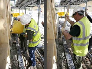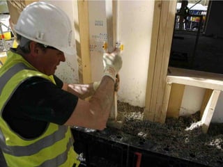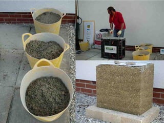 The document discusses the construction of a renewable house featuring sustainable materials and practices, such as hemp-lime composites and a design that promotes affordable housing. It outlines key facts about the house, including its cost, construction time, and the organizations involved in the project. Additionally, it highlights the environmental benefits of using hemp in construction, contributing to reduced carbon dioxide emissions.