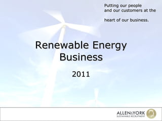 1) Allen & York is a specialist recruitment firm established in 1993 that focuses on recruiting for renewable energy, engineering, and environmental sectors.
