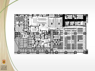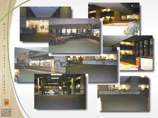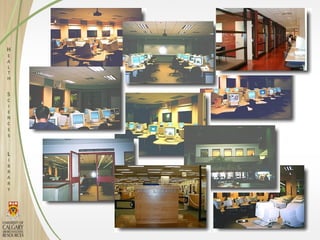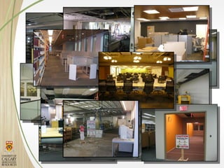 The Health Sciences Library at the University of Calgary underwent renovations to update and improve the space. The old entrance and learning commons areas were completed as part of the initial construction phase. Preparations were then made before the recent and more extensive renovations began, which have now finished to create a modernized Health Sciences Library.