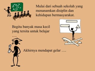 Dokumen ini menceritakan perjalanan hidup seseorang dari masa kanak-kanak hingga dewasa. Mengalami berbagai masa dalam pendidikan, karir, membangun keluarga, hingga akhirnya merenungkan makna hidup dan memutuskan untuk menikmati hidup dengan penuh cinta kasih.