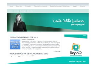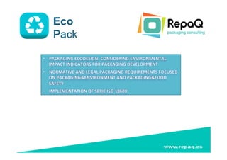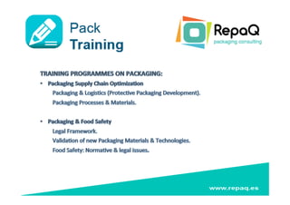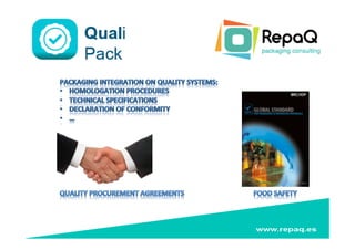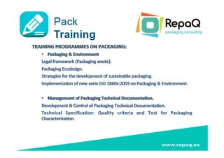 This document provides an analysis of packaging for a company that produces pre-cooked foods. It analyzes 133 packaged products across 6 packaging lines and 83 packaging material references. The analysis seeks to help the company comply with regulatory and standards requirements for packaging. It also describes online consulting services that can help answer questions about packaging compliance.