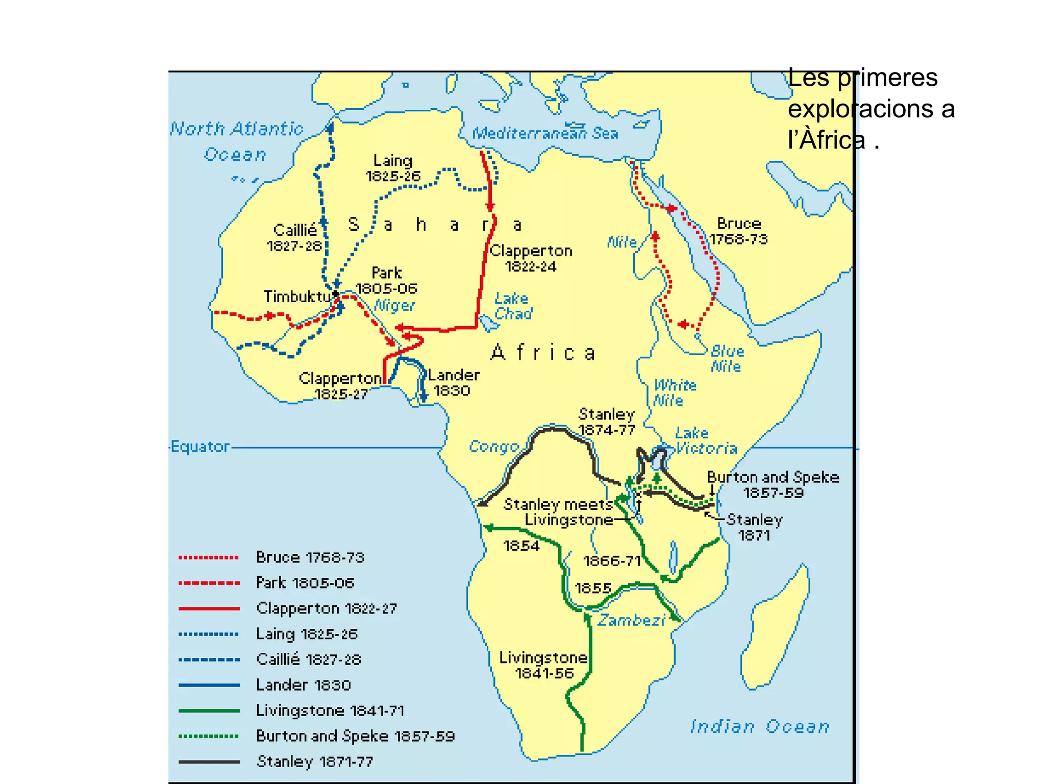 David Livingstone fou un dels primers europeus a explorar l’interior de l’Àfrica.. Doctor Livingstone, I supose...? Trobada entre Stanley i Livingstone.