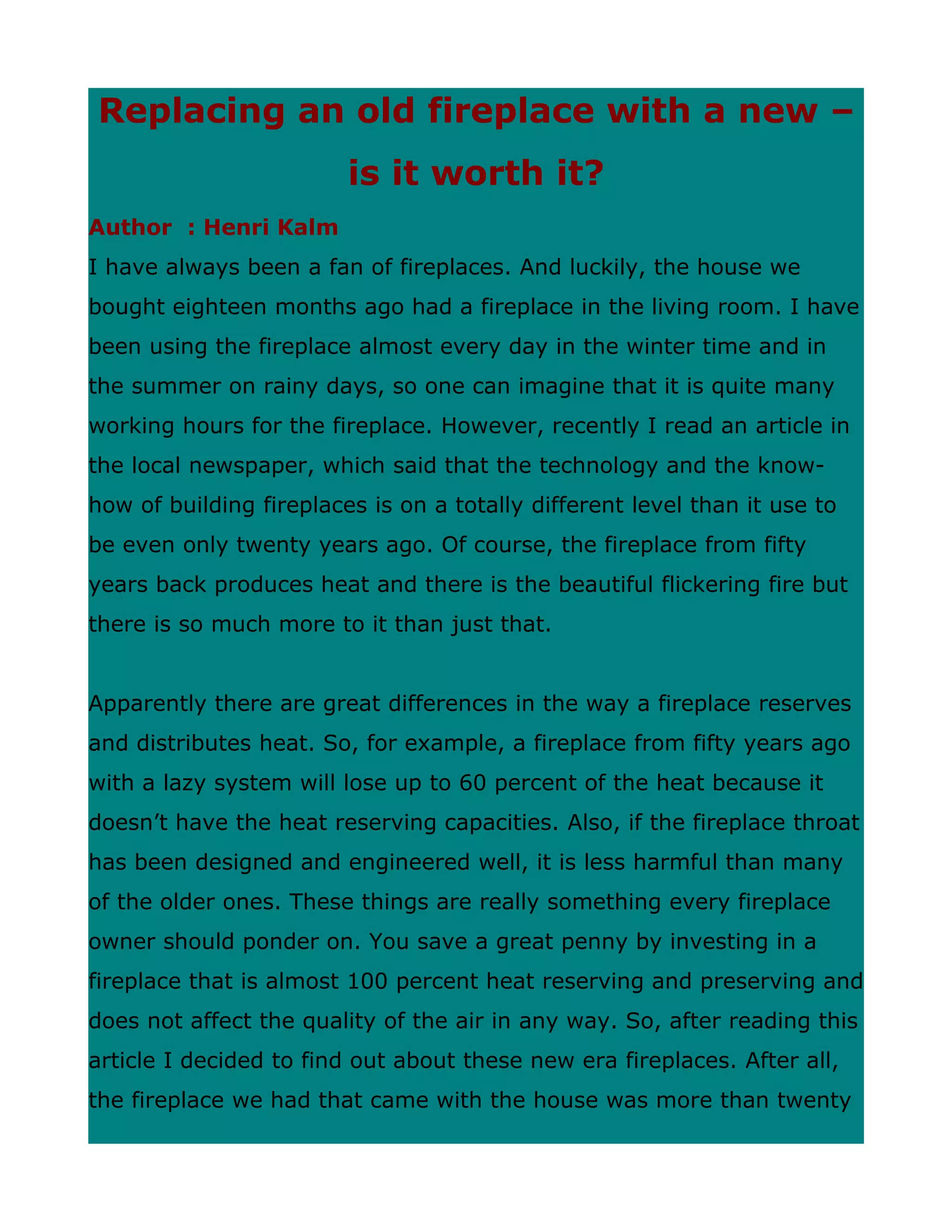 Replacing an old fireplace with a new is it worth it DOC