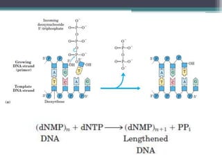 DNA replication is the process by which DNA copies itself to produce identical daughter molecules. Some key points: