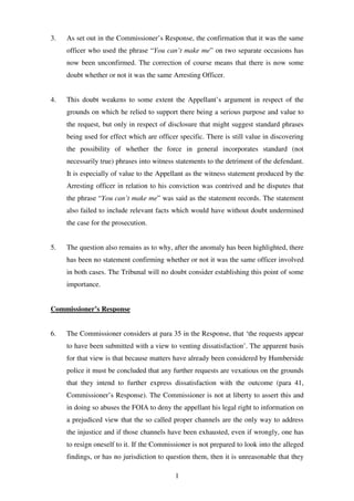 The document is a detailed reply from an appellant to the Information Commissioner's response regarding an appeal in the First-Tier Tribunal concerning allegations of police misconduct and the handling of information requests under the Freedom of Information Act. It highlights issues of procedural injustice, the potential misuse of complaint processes by the police, and the appellant's concerns regarding the adequacy of previous judicial handling of his case. The appellant disputes the classification of his requests as vexatious and emphasizes the importance of obtaining information that could support his claims of police negligence and misconduct.