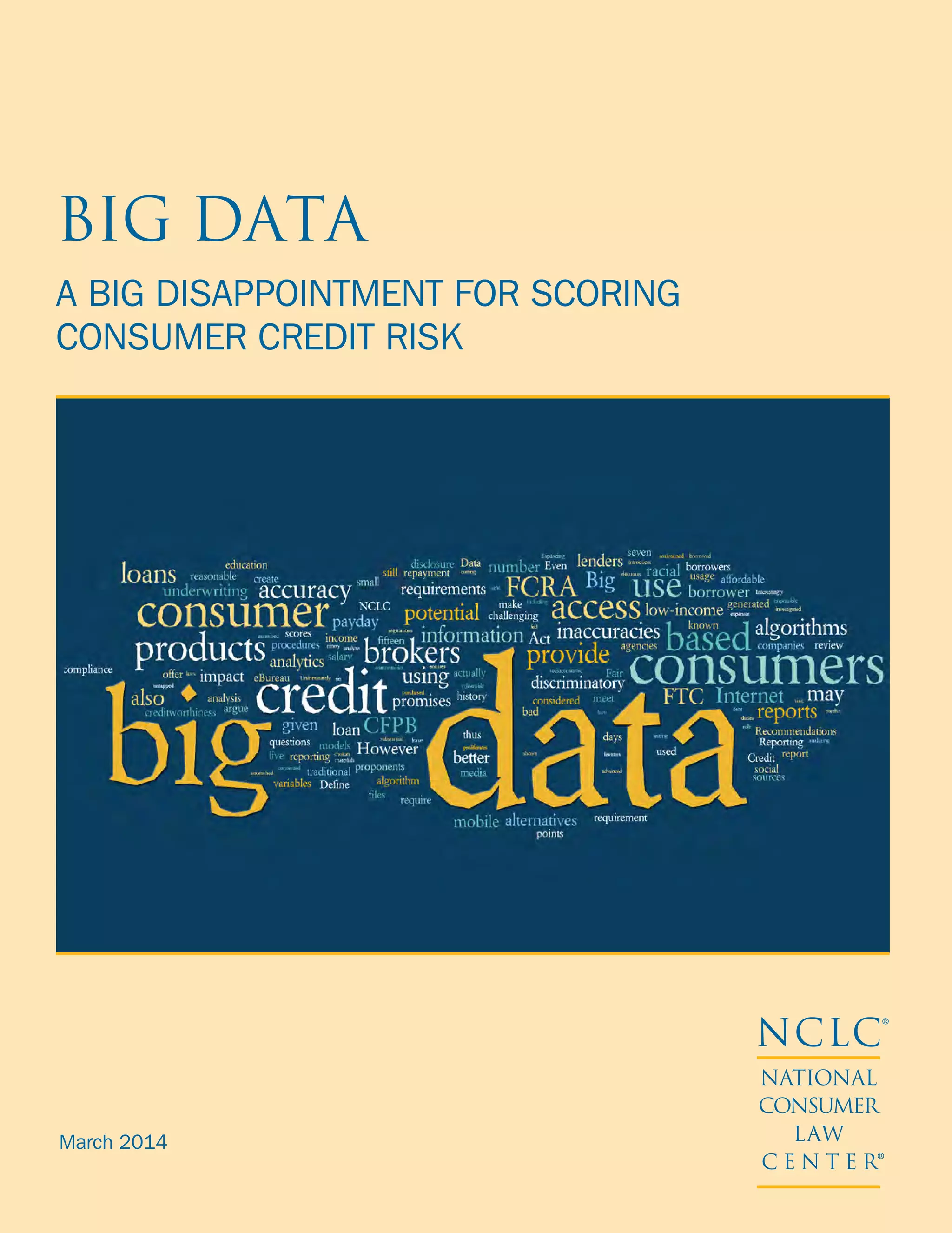 This document discusses concerns about the use of big data in consumer credit scoring. It summarizes a study conducted by the National Consumer Law Center that found significant inaccuracies in consumer data reports from several big data brokers. The document also analyzes whether big data scoring complies with laws like the Fair Credit Reporting Act and could result in discriminatory impacts. Finally, it reviews loan products using big data underwriting and finds that they fail to provide genuinely affordable alternatives to payday loans. Overall, the document concludes that big data has not lived up to its promise to expand access to credit for underserved consumers in a fair, accurate and beneficial way.