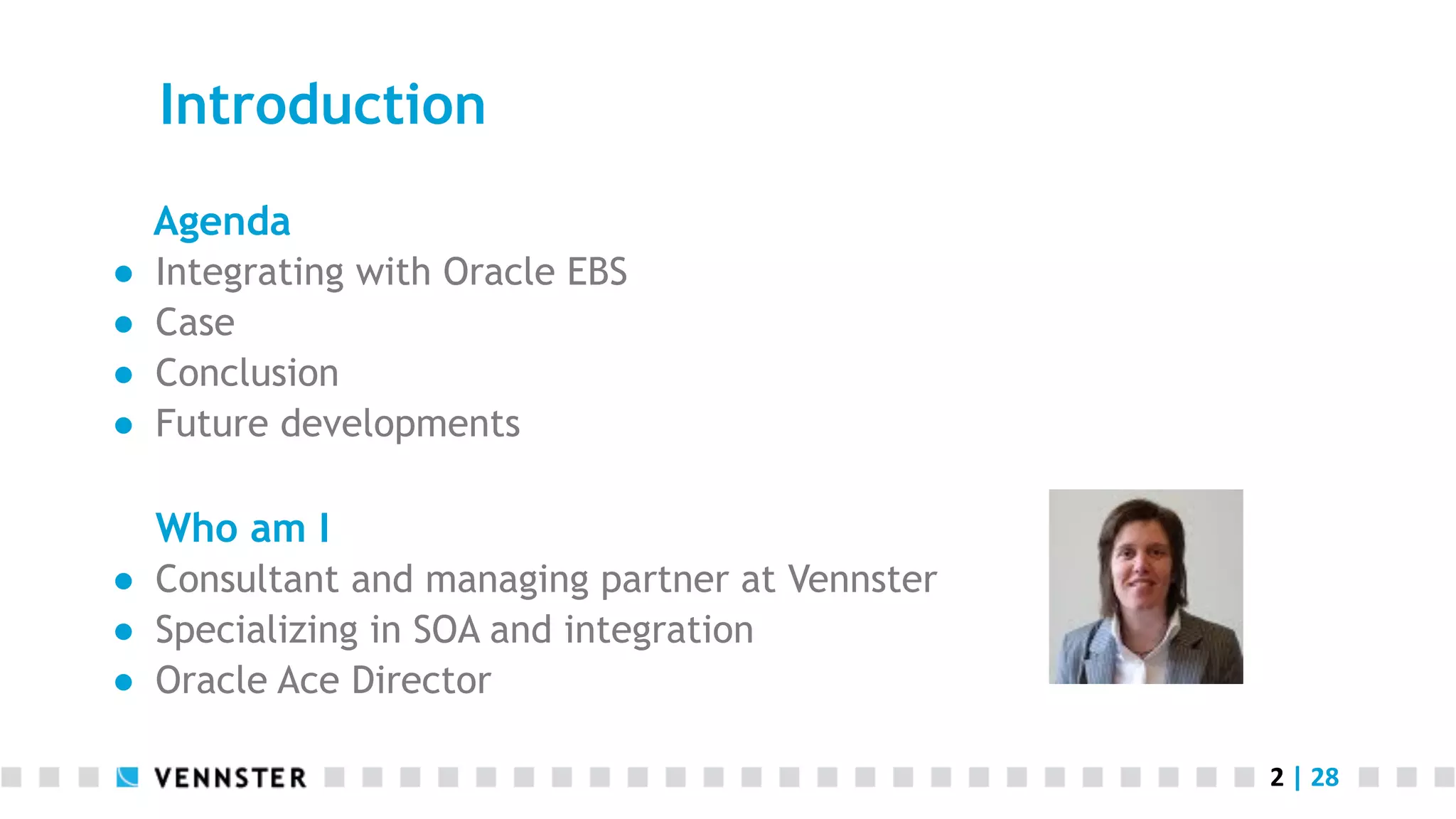 The document discusses the use of the integrated SOA gateway at the City of Rotterdam, focusing on the integration with Oracle EBS. It outlines various use cases, the configuration process, and the design decisions for implementing web services, including security measures and the advantages of this approach. Future developments related to Oracle EBS and Fusion applications are also mentioned, highlighting the transition to newer technologies.