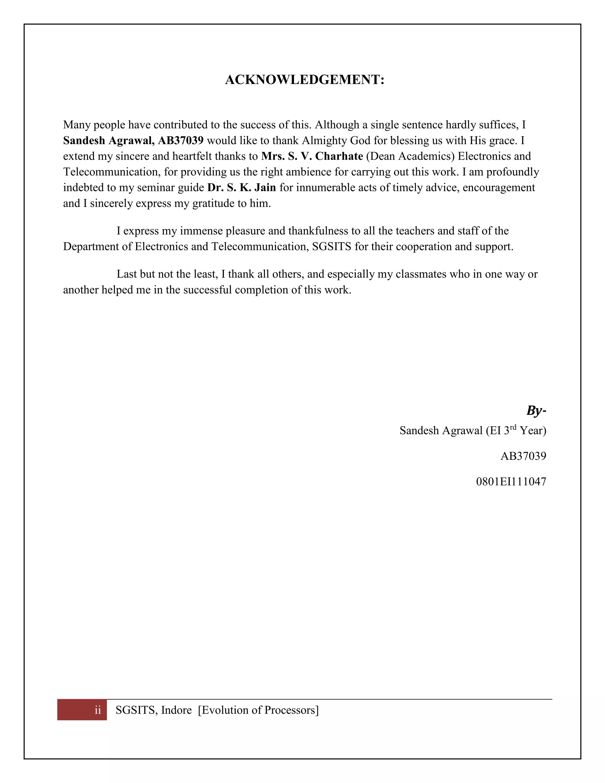 The document is a comprehensive report on the evolution of processors, detailing their history from the introduction of the first microprocessor by Intel in 1971 to present-day advancements. It covers the basic functions of microprocessors, their applications in various devices, and the differences between microprocessors and microcontrollers. The report also explores the progression from mechanical computing to the modern era of microprocessors, including various generations of technology.