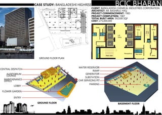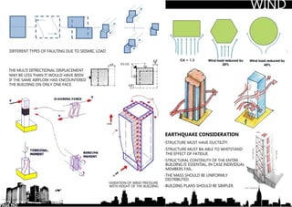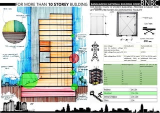 This document provides information about the core of a high-rise building. It defines a core as a vertical space used for circulation and services like elevators, staircases, and mechanical systems. Cores allow efficient distribution of these services to floors. The document discusses different core types and considerations for placement of mechanical and plumbing systems, as well as toilet access. Elevator types, sizes, and fire safety standards are also outlined.