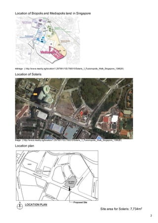 This document provides information about the Solaris building located in Singapore. Some key details: