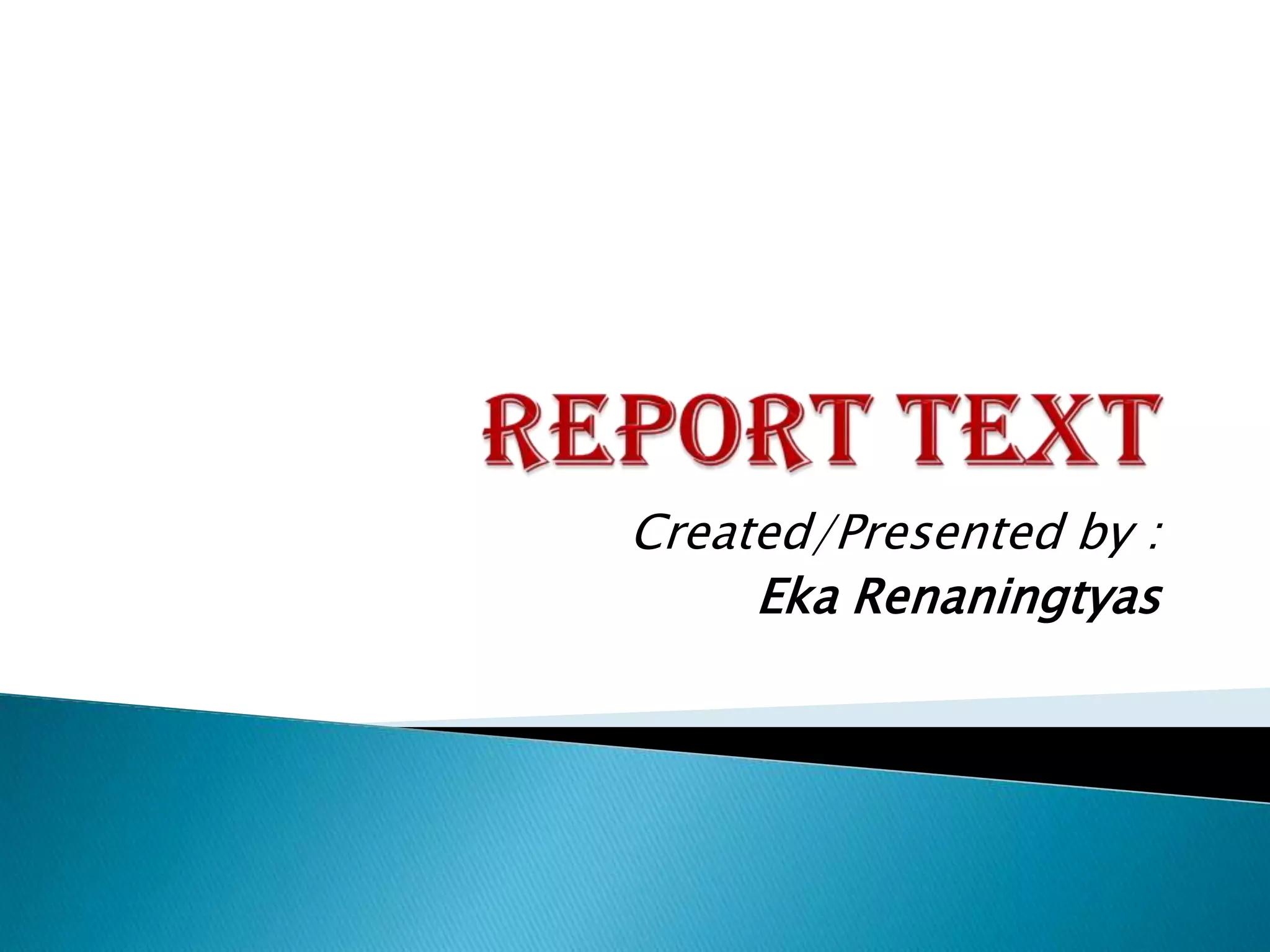 Report Text adalah sebuah teks yang menyajikan