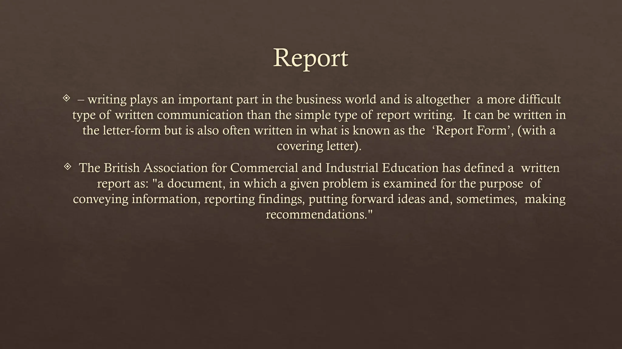the letter-form but is also often written in what is known as the ‘Report Form’, (with a
