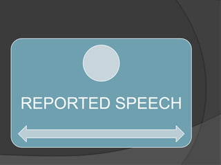 The document discusses direct and indirect, or reported, speech. It explains that direct speech uses quotation marks to report what someone said verbatim, while indirect speech reports the essence of what someone said without necessarily using their exact words. Indirect speech often changes verb tenses depending on when the statement was made. For example, if reporting something said in the past, the tense would be changed to the past tense. The document provides several examples of how tenses are changed between direct and indirect speech statements.