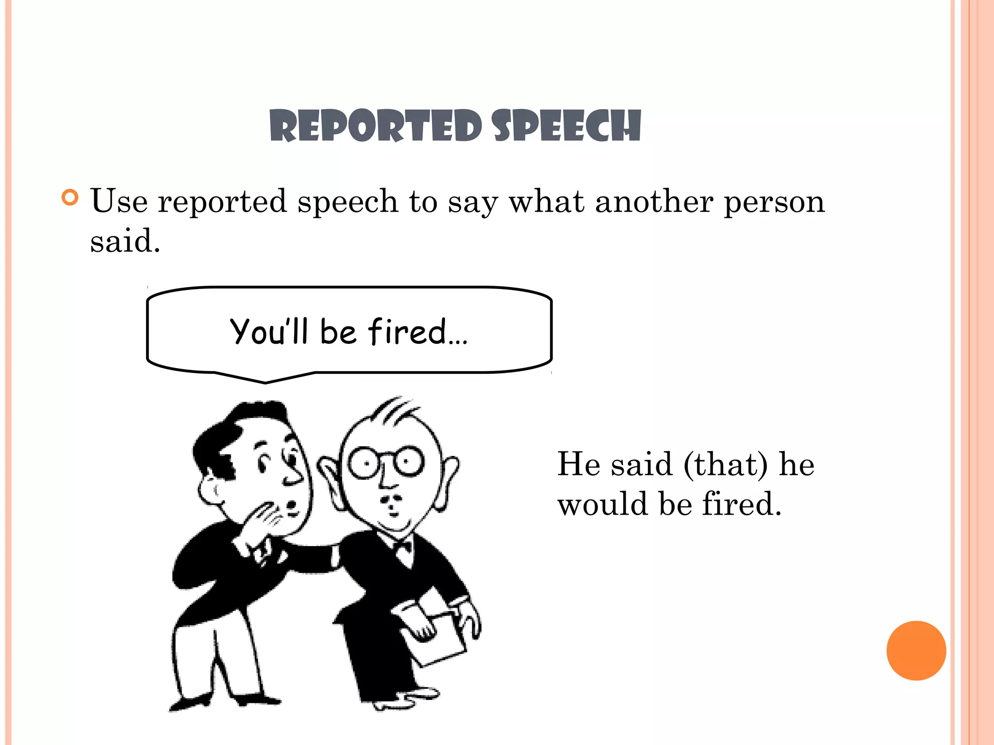 Reported speech is used to report what another person said by changing the verb tenses and pronouns. Verbal tenses like present simple become past simple in reported speech, and pronouns change accordingly. Questions are reported by changing the verb tenses the same way and adding "if" when reporting questions that begin with "do", "can", etc.