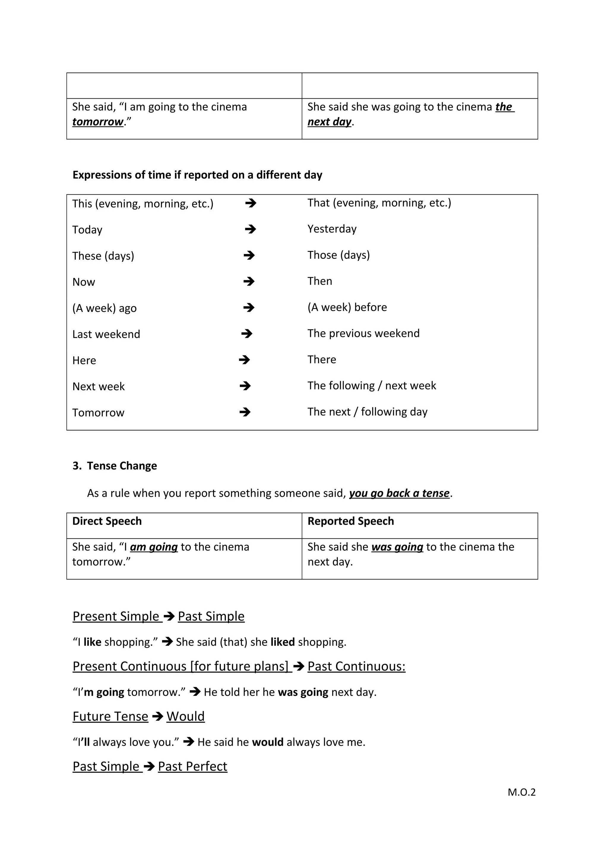 This document discusses direct and reported speech. Direct speech uses quotation marks to report the exact words said, while reported speech does not use quotation marks and does not have to be word-for-word. When changing direct speech to reported speech, pronouns, time/place words, and verb tenses typically change. Questions are changed to a subject-verb word order and do not use auxiliary verbs like "do" or "did". Commands and requests are reported using "told" or "asked" followed by "to" plus the verb.