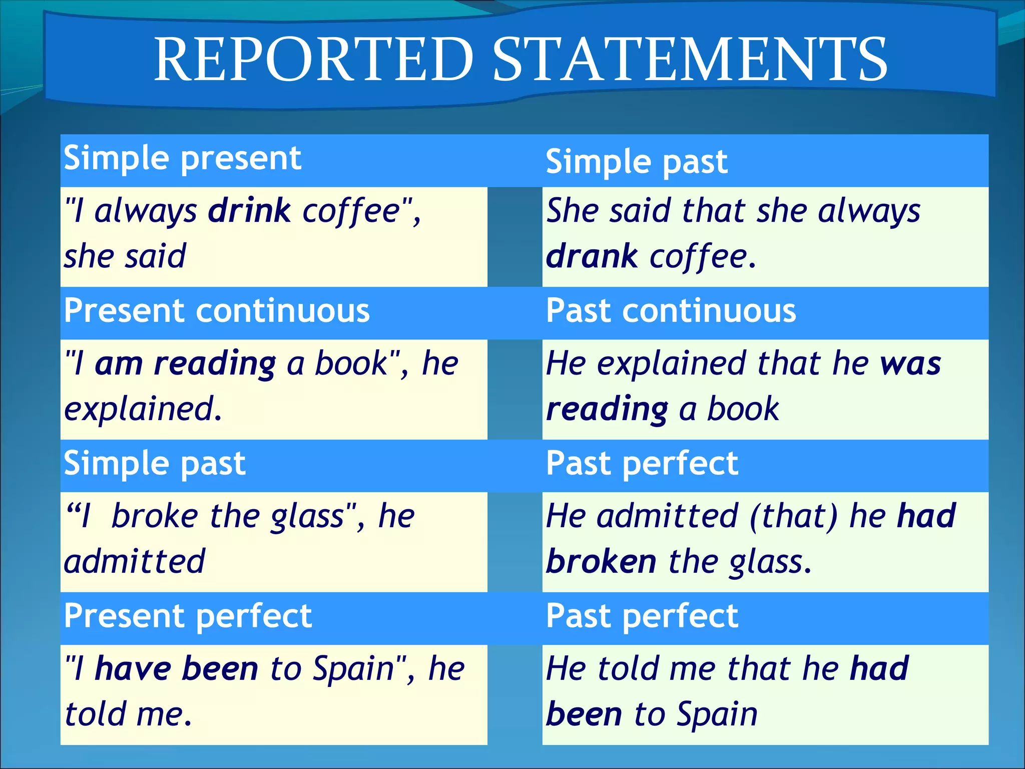 The document discusses the rules for changing direct speech into indirect speech in English. It explains that the tense usually backshifts when changing to indirect speech, except when the statement refers to something still true. It also covers changing other elements like pronouns, adverbs of time and place, and question forms. Verbs commonly used to report speech and the structures they take are categorized.