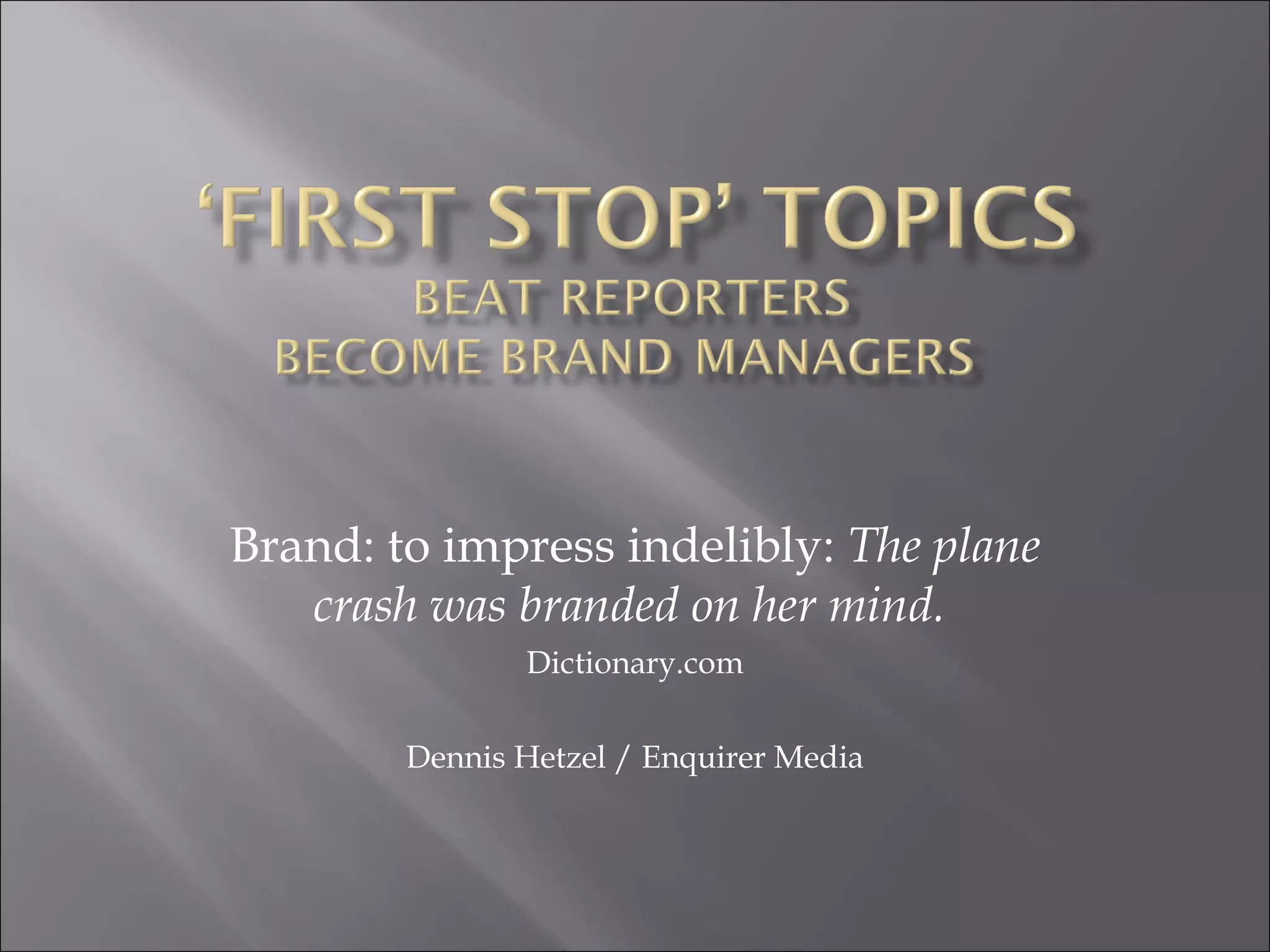 The document discusses the evolving role of reporters in the age of social media, focusing on the need to be the first source of information on key topics to gain strategic advantage. It highlights the importance of audience interaction in shaping content and the shift from traditional publishing to a more collaborative and dynamic model. The analogy of classical conductors to improvisational jazz emphasizes the change from controlling content to engaging with audiences as active participants.