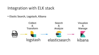 The document discusses integrating Barracuda Web Application Firewall (WAF) with the ELK stack and Microsoft Operations Management Suite (OMS). It describes how the ELK stack provides real-time data analytics and full-text search capabilities for logs from multiple sources. It also explains that the OMS integration involves installing an OMS agent on the WAF virtual machine that connects to the OMS log collector and allows various log types including access, audit, and firewall logs to be analyzed in the OMS portal.