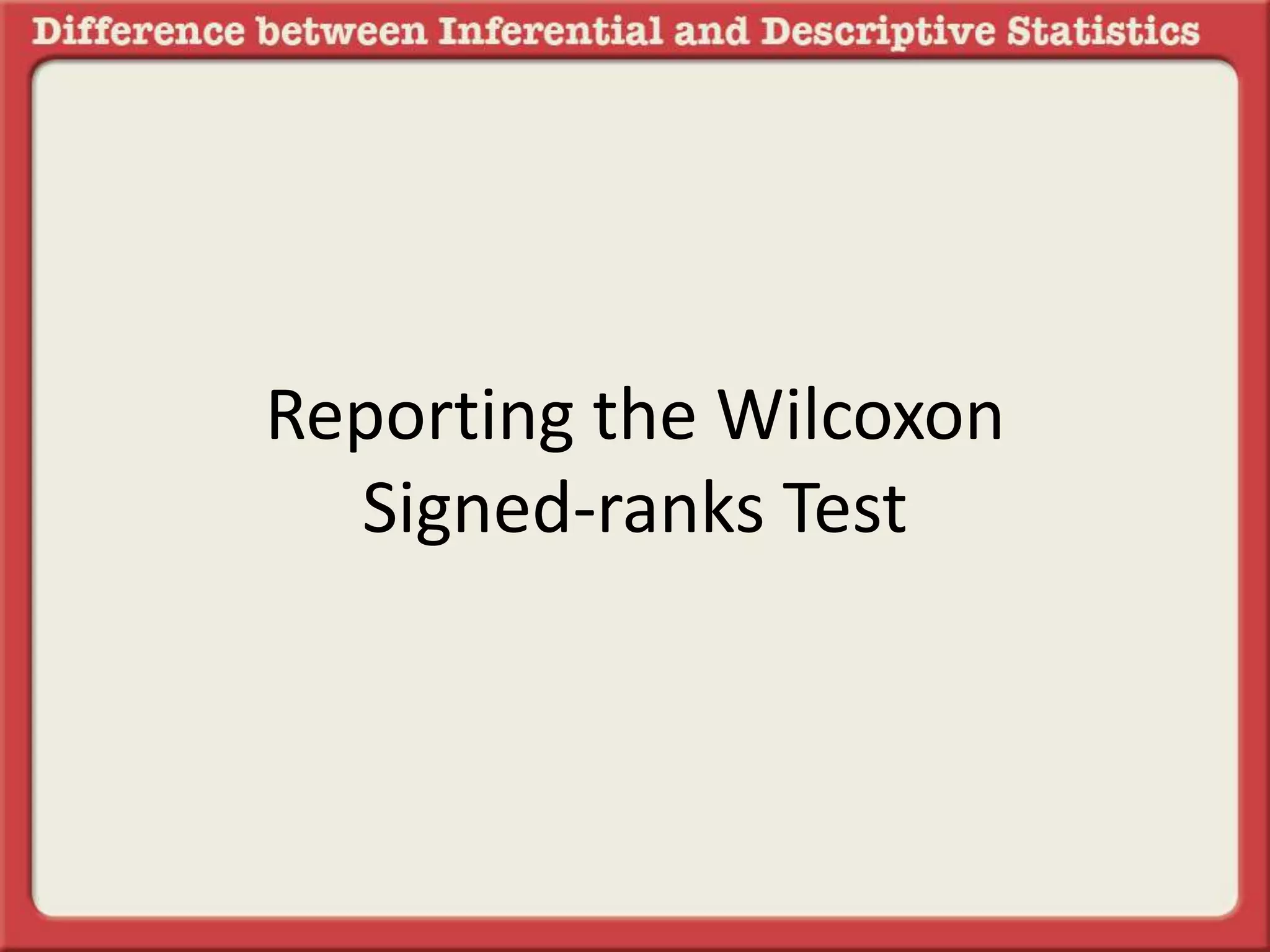 A Wilcoxon Signed-Ranks Test was conducted to compare pre-test and post-test ranks. The results indicated that post-test ranks were statistically significantly higher than pre-test ranks, with a Z score of 21 and p value less than .027. The document provided guidance and examples for reporting the results of the Wilcoxon Signed-Ranks Test in APA style.