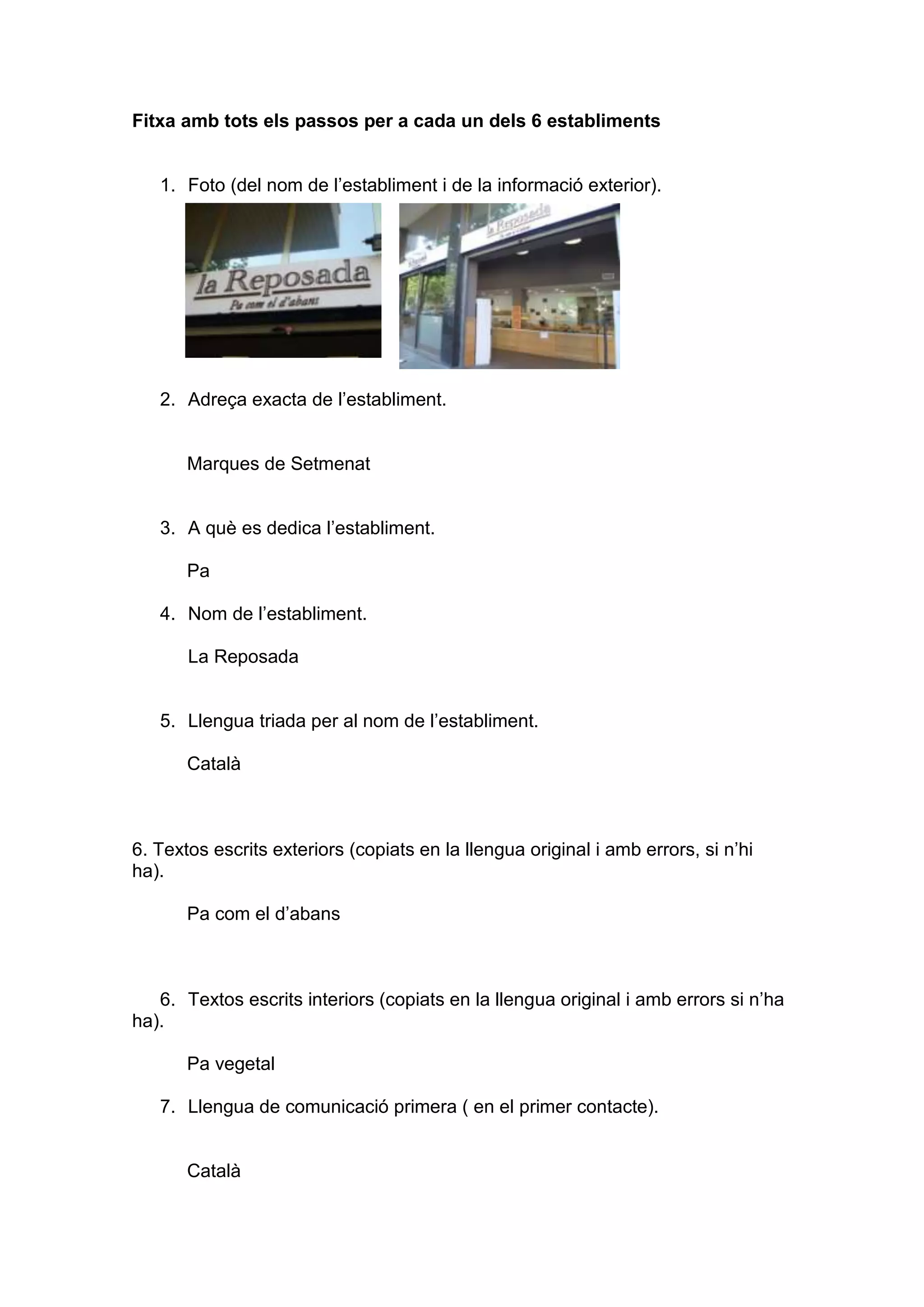 1. Foto (del nom de l’establiment i de la informació exterior).