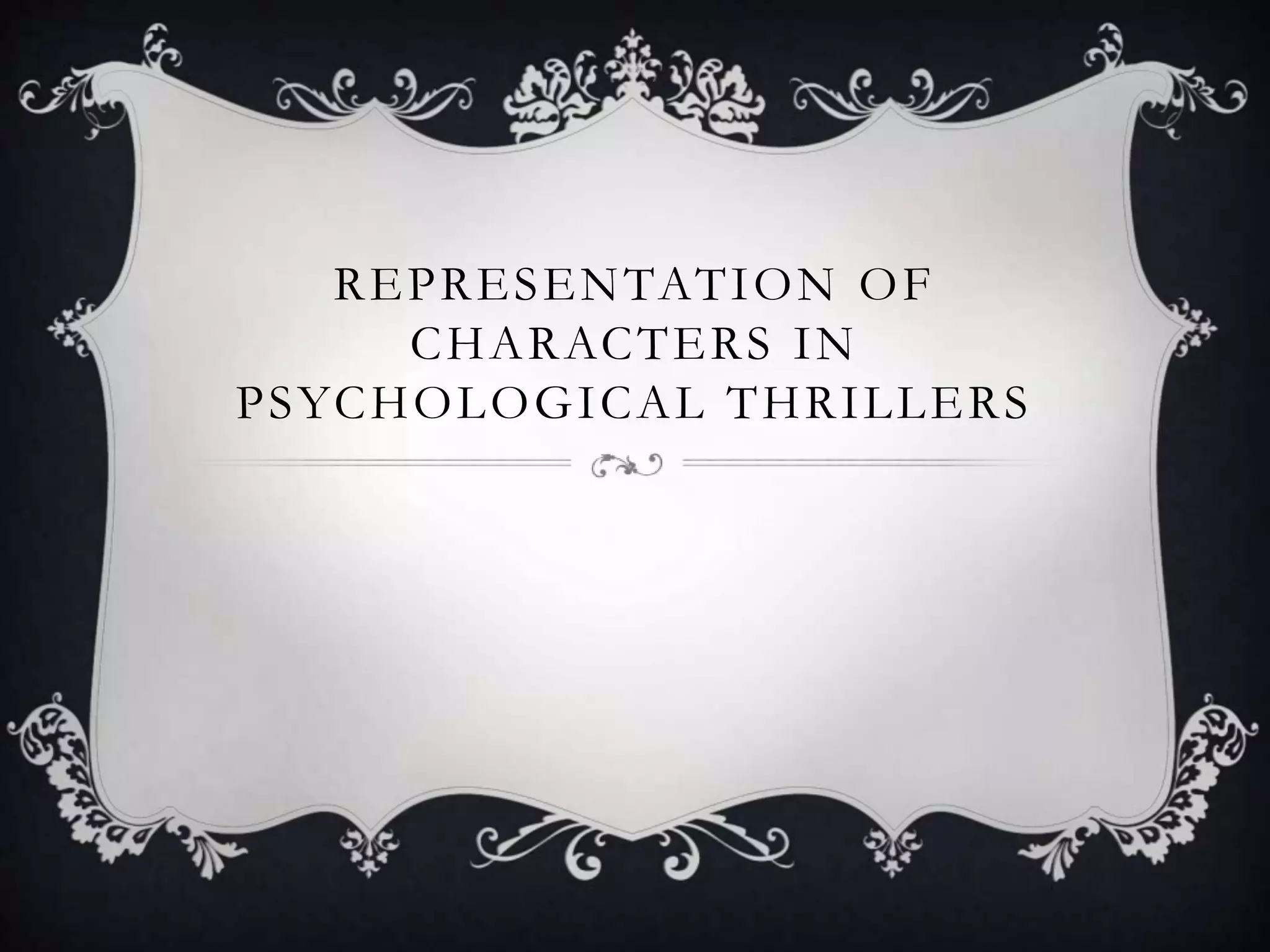 In psychological thrillers, characters are often vulnerable individuals who have lost something important, like their family, making them susceptible to manipulation. Main characters are usually males who are taken to their lowest point to engage the audience. Females sometimes take main roles but more often play supporting roles as vulnerable people the main character relies on, such as a mother or daughter. Other common representations include characters who are psychotic or of lower-middle class.