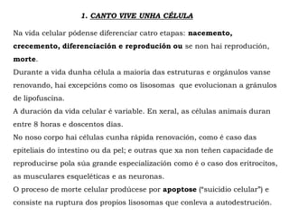 O Ciclo celular ou vital é o conxunto de procesos que van dende o