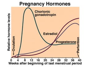 The female reproductive system undergoes a monthly cycle to prepare for potential pregnancy. If pregnancy does not occur, the thickened uterine lining sloughs off during menstruation. The cycle consists of three phases - the follicular phase where an egg is selected and matured, ovulation of the egg, and the luteal phase where the corpus luteum secretes hormones in preparation for potential implantation. This cycle is regulated by hormones from the hypothalamus, pituitary gland, ovaries and uterus.