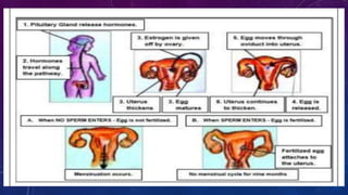 The document outlines the human reproductive system, detailing the male and female reproductive organs and their functions, emphasizing the role of hormones in regulating these processes. It explains the menstrual cycle, how hormones influence reproductive activities, and highlights the importance of maintaining homeostasis within the body. Additionally, it discusses common myths related to reproductive health.