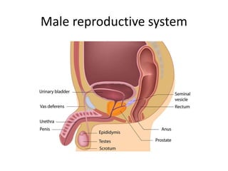 The document discusses the male and female reproductive systems. It covers the anatomy of both the male reproductive system and the female reproductive system in a brief manner.
