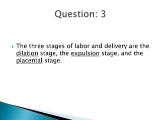 3) The placental stage where uterine contractions continue to push out the placenta after delivery.