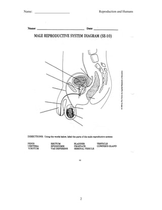 The document summarizes the male and female reproductive systems in humans. It discusses the key parts of each system including how sperm and eggs are produced. It also describes fertilization, prenatal development through each stage of pregnancy, and birth. The roles of hormones like estrogen and testosterone are explained. Factors that can impact prenatal development like nutrition, drugs, and infections are also covered at a high level.