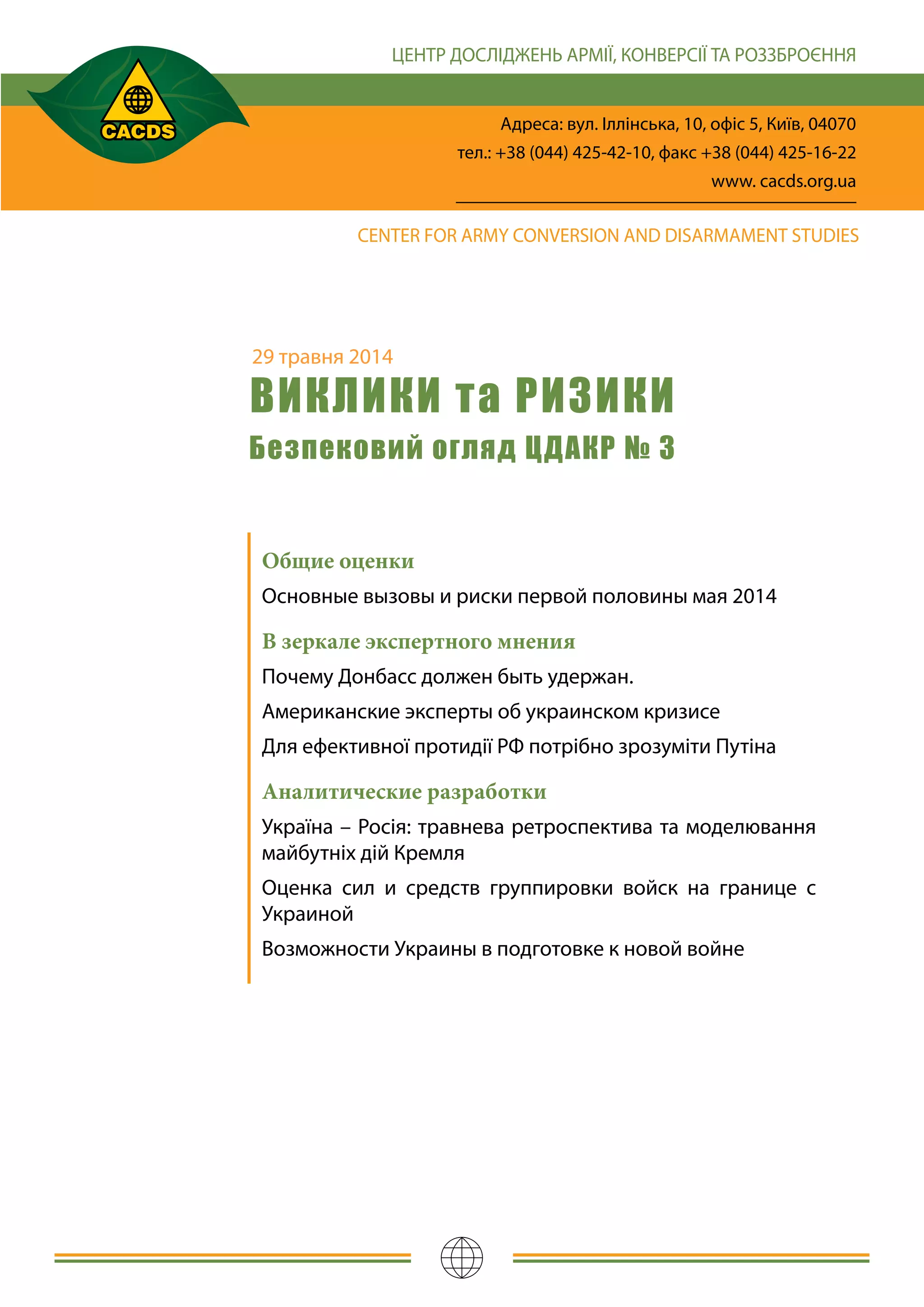 Документ представляет собой аналитический обзор вызовов и рисков безопасности в Украине, сосредоточенный на ситуации в восточных регионах и угрозах, связанных с парамилитарными группами. Эксперты подчеркивают значимость понимания мотивации участников конфликта и необходимость сильной разведывательной системы и действий на международном уровне для противодействия военным угрозам. Также обсуждаются последствия открытых границ и внимание к внутренним социальным программам для стабилизации ситуации.