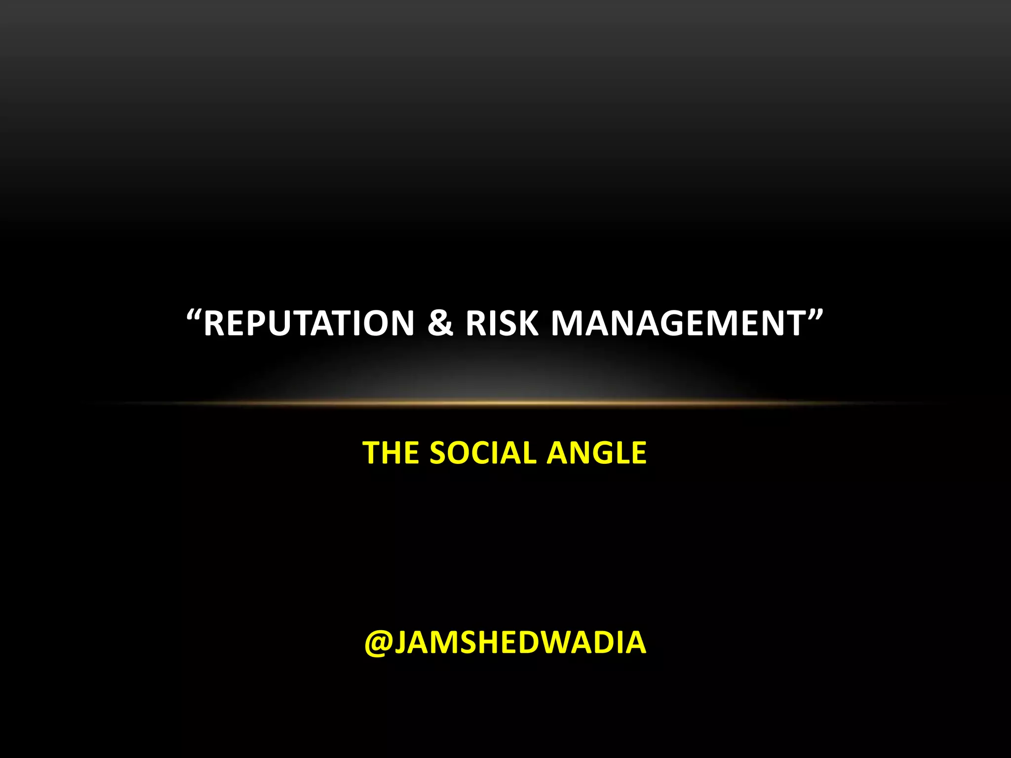 The document discusses the importance of reputation management in the era of social media, highlighting how consumer trust has shifted from institutions to personal recommendations. It emphasizes the significant impact of social media on a company's reputation, suggesting that organizations must be proactive in managing risks and engaging effectively with stakeholders. Additionally, it notes the necessity for training and guidelines to empower employees in maintaining a positive online presence and mitigating potential reputational crises.