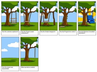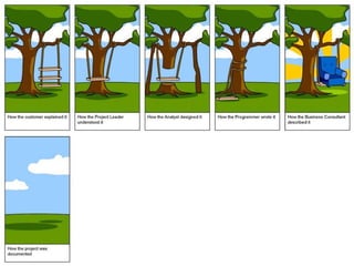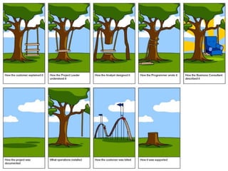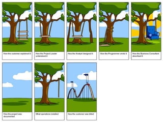 The document discusses software requirements and requirement engineering. It defines what requirements are, including different levels like business, user, and functional requirements. It explains that requirement engineering determines the goals, functions, and constraints of software systems. The document outlines the requirement engineering process and discusses common challenges like the "yes, but" syndrome where users provide additional feedback, and the "undiscovered ruins" syndrome where further requirements are uncovered. It provides examples of techniques to elicit requirements like interviewing stakeholders, workshops, brainstorming, storyboarding, use cases, and prototyping.