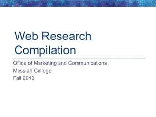This document summarizes research on Messiah College's website from various sources such as surveys of prospective and current students. Some key findings include: