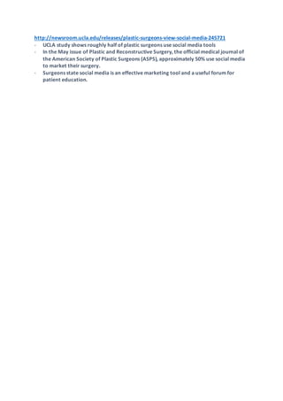 4) A link has been found between rising plastic surgery rates and social media, as 10 out of 15 patients bring photos from Instagram and Snapchat filters to plastic surgeons